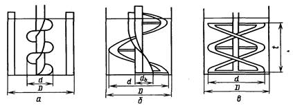 Рис. 6 Схема шнековых (а) и ленточных (б, в) мешалок.
