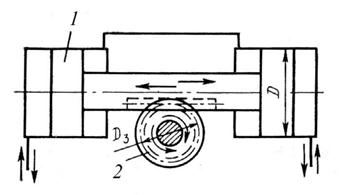 Рисунок 2.10 – Гидроцилиндр с демпфером: 1 – цилиндрический канал корпуса гидроцилиндра; 2 – цилиндрический хвостовик; 3 – поршень