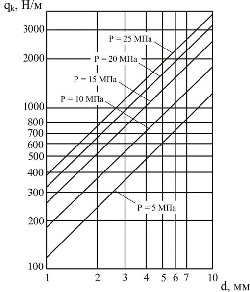 τКР= qKπd, (2.20) где d – диаметр уплотняемого соединения; qК – удельная сила трения на единицу длины уплотнения, определяется по графику (рисунок 2.9).