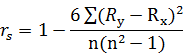 3. Рассчитывается rs — коэффициент корреляции между рангами х и у по формуле: