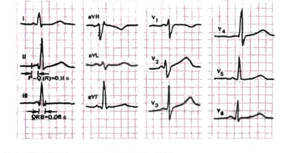 Различают полную и неполную блокаду левой и правой ножки пучка Гиса, блокаду передне- верхней и задне - нижней ветвей левой ножки пучка Гиса, частичную и полную двустороннюю блокаду. При блокаде ножек пучка Гиса проведение наджелудочковых импульсов синусовых и эктопических через одну из ножек пучка Гиса замедлено или прервано, вследствие чего один желудочек активируется позже другого. Блокада правой ножки пучка Гиса может быть полной и неполной, чаще возникает при ИБС, митральном стенозе, легочном сердце, стенозе легочной артерии и т.д. Характерной особенностью ПБПНПГ является значительное расщепление 1-го и 2-го тонов сердца, что связано с несинхронным сокращением левого и правого желудочков. На ЭКГ- уширенный комплекс QRS.,больше 0,12 сек. В виде буквы М в отведениях V1,V2, глубокий, широкий зубец S в отведениях V5-V6.При полной блокаде левой ножки пучка Гиса, которая чаще наблюдается при ИБС,гипертонической болезни,пороках аортального клапанов,миокардитах, дефектах межпредсердной перегородки на ЭКГ имеется уширенный комплекс QRS в отведениях V5 и V6, 1, AVL,расширенный и зазубренный зубец S.Или комплекс QS в отведениях V1-V2. Блокада передней ветви левой ножки пучка Гиса характеризуется сильным отклонением ЭОС влево, ширина комплекса QRS нормальная или увеличена до 0,10-0,11 сек., блокада задней ветви характеризуется резким отклонением ЭОС вправо, комплекс QRS нормальный или уширенный. Блокады могут быть двухпучковые и трехпучковые. Синдром укороченного интервала Р Q(R) (Синдром Клерка-Леви-Кристеско) Синдром укороченного интервала P Q (R) был описан в 1938 г. A. Clerk, R. Levy и С. Critesco (синдром CLC). В основе этого синдрома лежит наличие дополнительного аномального пути проведения электрического импульса между предсердиями и пучком Гиса — так называемый пучок Джеймса. Этот пучок как бы шунтирует АВ-узел, приводя к ускоренному возбуждению желудочков. В от личие от синдрома WPW возбуждения при синдроме CLC распространяется по желудочкам обычным путем, т. е, по пучку Гиса, ветвям пучка Гиса и волокнам Пуркинье.Для синдрома CLC характерны укорочение интервала P Q (R) менее 0 J 2 с и обычно узкие, нормальной формы комплексы QRS (без Д-волны). Кроме того, у больных с синдромом CLC нередко наблюда ются приступы пароксизмальный суправентрикулярной тахикардии или мерцательной аритмии, что также обусловлено возмож ностью кругового движения волны возбуждения (re entry) по пучку Джеймса и АВузлу. На рис. 1 представлена ЭКГ больного с синдромом CLC. ЭКГ признаки 1. Укорочение интервала РQ(R), продолжительность которого не превышает 0,11 с 2. Отсутствие в составе комплекса QRS дополнительной волны возбуждения — Δ-волны 3. При отсутствии блокады ножек и ветвей пучка Гиса комплексы QRS не уширены и не деформированы