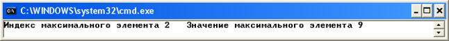 9. Найти максимальный элемент массива и его индекс. Сохраним значения первого элемента и его индекса в переменных amax = a[0], imax = 0. Далее будем просматривать остальные элементы массива последовательно, начиная со второго, сравнивать очередной элемент a[i] со значением, сохраненным в переменной amax и заменять значение amax и индекс imax, если очередной элемент оказался больше. int[] a = new int[5] { 4, 3, 9, 5, 7 }; int amax = a[0]; int imax = 0; for (int i = 1; i < 5; i++) { if (a[i] > amax) { amax = a[i]; imax = i; } } Console.WriteLine("Индекс максимального элемента {0:d} Значение максимального Console.ReadKey();
