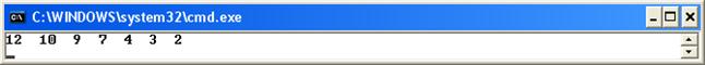После выхода из цикла количество элементов массива im находится в переменной k. 10. Упорядочить массив. Требуется расположить элементы массива a в определенном порядке, например, по убыванию. Рассмотрим алгоритм упорядочения, базирующийся на двух уже рассмотренных алгоритмах, а именно на алгоритмах поиска максимального элемента и перестановки элементов. В цикле при i = 0, 1, 2, …, n – 2 будем устанавливать на нужное место i -й элемент. Для этого найдем максимальный элемент и его индекс в части массива, начиная с i -го элемента, и далее поменяем местами максимальный элемент с i -м. После окончания цикла элементы массива будут расположены в порядке убывания, при этом на последнем n -м месте окажется самый маленький элемент: const int n = 7; int[] a = new int[n] { 4, 7, 9, 10, 3, 12, 2 }; for (int i = 0; i < n - 2; i++) { int amax = a[i]; int imax = i; for (int j = i + 1; j < n - 1; j++) { if (a[j] > amax) { amax = a[j]; imax = j; } } a[imax] = a[i]; a[i] = amax; } for (int i = 0; i < n; i++) Console.Write("{0:d} ", a[i]); Console.WriteLine(); Console.ReadKey();