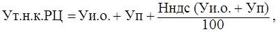 где Ут.н.к.РЦ – уровень торговой надбавки к розничной цене; Уи.о. – расчетный уровень издержек обращения розничного торгового предприятия; Уп – расчетный уровень рентабельности розничного торгового предприятия; Ут.н.к.ОтЦ(ООЦ, ЦЗ) – уровень торговой надбавки к отпускной цене (оптово-отпускной или цене закупки товара); Нндс – ставка НДС, %.
