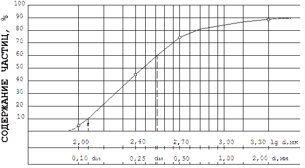 Рисунок 2 - Кривая распределения зернового (гранулометрического) состава песчаного грунта