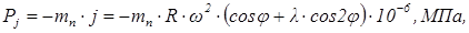 2.3. Удельные силы инерции. Для удобства последующего суммирования газовых и инерционных сил последние относятся к 1 м2 площади поршня. Удельные силы инерции возвратно-поступательного движения масс одного цилиндра для рядного и V -образного дизеля определяются по формуле: