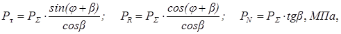 Удельные тангенциальные Р т, радиальные PR и нормальные PN силы рассчитываются по формулам:
