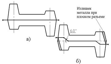 Рис. 2.3. Линия разъема штампа: а) - рекомендуемая; б) – не рекомендуемая