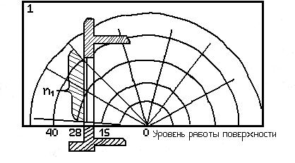 Рис. 1. Определение количества лучей n1, проходящих через световые проемы, по графику 1 (разрез помещения)