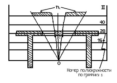 Рис. 2. Определение количества лучей n2, проходящих через световые проемы, по графику 2 (план помещения) 4.1.3 Пример расчета