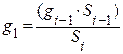 где Si, Si-1–- ширина рассматриваемого i-го и предшествующего ему i-1 участка пути, м; gi, gi-1 –- значения интенсивности движения людского потока по рассматриваемому 1i-му и предшествующему ему (i-1) -му участка пути, м/мин;