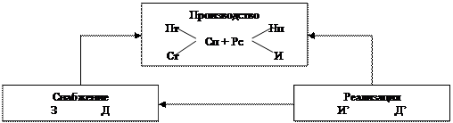 З – запасы производства Рс – рабочая сила Д – денежные средства Нп – незавершенное производство Пт – предметы труда И – изделия по фактической себестоимости Ст – средства труда И’ – изделия по цене реализации Cп – средства производства Д’ – денежные средства в возросшей сумме