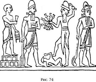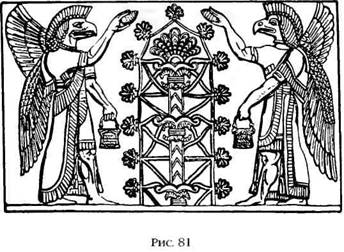 На большинстве рисунков «орлы» изображены не в виде уродливых людей‑птиц, а как антропоморфные существа, одетые в костюмы, придающие им сходство с орлами. Хеттская легенда об исчезнувшем боге Телепину рассказывает, что его поисками занялись как главные, так и второстепенные боги, а «Шамаш послал своего быстрого орла». В Книге Исхода приводятся слова Господа, который напоминает: «Я носил вас [как бы] на орлиных крыльях, и принес вас к Себе». Эти слова подтверждают, что достичь Божественной Обители можно только на крыльях орлов – в точности, как в легенде об Этане. Во многих стихах Библии бог описывается как крылатое существо. Так, например, Вооз, представляя моавитянку Руфь своим соплеменникам, говорит, что она «пришла, чтоб успокоиться под Его крылами». Псалмопевец ищет укрытия в «в тени крыл Твоих» и так описывает спуск Господа с небес: «И воссел на Херувимов и полетел, и понесся на крыльях ветра». Анализируя сходные черты библейского Эла (титул или обобщенное имя Бога) и Элома хананеев, С. Лэнгдон («Semitic Mythology») обращает внимание на то, что в текстах и на монетах они оба изображались с крыльями. В месопотамских текстах Уту‑Шамаш неизменно изображается богом, в ведении которого находится место взлета и посадки «шемов», а также «орлы». Как и его подчиненные, он иногда появляется в костюме орла со всеми знаками отличия (рис. 82).