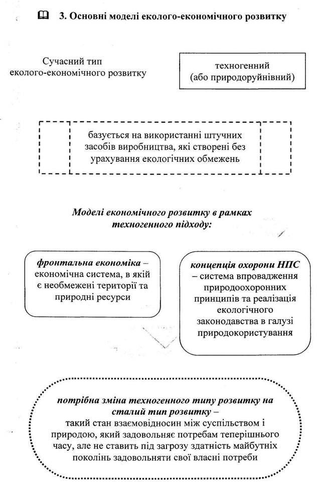 Контрольні запитання 1. Дайте визначення та накресліть структурну схему екологічної 2. Перелічіть необхідні умови функціонування елементів екосистеми. 3. Які організми живляться тільки органічними речовинами, які 4. Як називаються мікроорганізми - "сміттєзбірники"? 5. Чим відрізняються організми еврибіонти від стенобіонтів? 6. Наведіть умовні межі біосфери. 7. У межах якої зовнішньої сфери Землі знаходиться озоносфера? 8. Що таке екологічні фактори? 9. За яких умов спостерігається загибель виду? 11. Що відображає закон сукупної дії екологічних факторів? 12. Які постулати Коммонера об'єднує закон "бумеранга"? 13.Розкрийте основний зміст "Правила обов'язкового заповнення екологічних ніш". Тема 3. Основи економіки природокористування План 1. Наукові категорії природокористування. 2. Економічний розвиток і екологічний фактор. 3. Основні моделі еколого-економічного розвитку. 4. Оцінка корисності природних ресурсів. Література: [ 21,25, 26, 29, 37, 53, 58, 59, 72, 75] Міні-лексикон: економіка природокористування, економічна оцінка природних ресурсів, функції, види, концепції визначення економічної оцінки природних ресурсів; ціна природних ресурсів; екологічні збитки, економічні збитки від забруднення НПС; концепції диференціальної ренти, граничних витрат, еколого-економічне районування, полютанти, техногенний тип економічного розвитку, фронтальна економіка