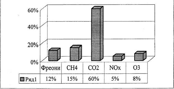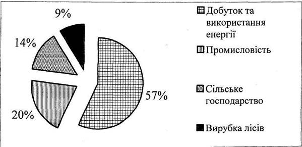 Вплив різноманітних видів господарської діяльності людини на розвиток парникового ефекту, %