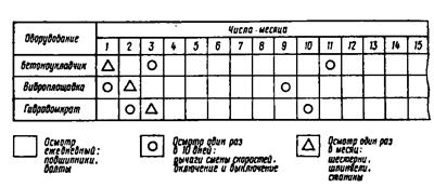Документом, регламентирующим межремонтное обслуживание, является календарный график осмотров. В нем указываются перечень оборудования, закрепленного за дежурным ремонтным персоналом, содержание работ, периодичность и сроки их проведения.
