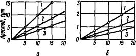 а – капитальном, б – текущем; 1 – при работе ремонтной бригады в одну смену; 2 – в две смены; 3- в три смены.