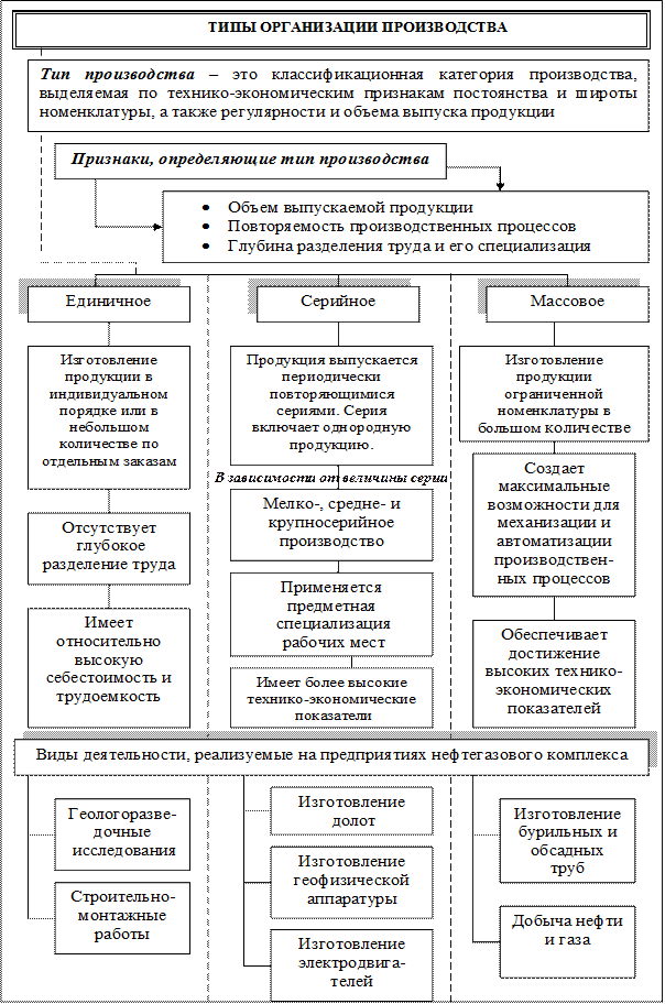 ВВЕДЕНИЕ Развитие и углубление рыночных отношений на современном этапе сопровождается актуализацией вопросов и проблем организации производства на предприятиях отраслей ТЭК. Практика свидетельствует, что повышение эффективности отечественной экономики связано не только с преобразованиями, проводимыми на макроуровне. Немаловажное значение имеют стиль и методы управления производством, используемые на современном этапе и способствующие достижению предприятием поставленных целей и задач. С позиции рыночной экономики предприятие следует рассматривать как целостную производственную систему, включающую совокупность взаимосвязанных между собой элементов, в процессе взаимодействия которых удовлетворяются потребности и запросы потенциальных потребителей с помощью производимых этой системой товаров и услуг. Элементами предприятия как производственной системы могут выступать, с одной стороны, персонал и материальные объекты - орудия труда, предметы труда, технология, организация производства. С другой стороны, составляющими предприятия являются его структурные подразделения, согласованность и четкость в работе которых призваны обеспечить устойчивое функционирование предприятия в условиях жесткой конкурентной борьбы и динамично развивающейся внешней среды. Данные обстоятельства предполагают необходимость изучения будущими специалистами, получающими квалификацию экономиста-менеджера, курса «Организация производства на предприятиях отраслей ТЭК», который по своему содержанию является теоретико-методической дисциплиной. Основная цель курса - формирование у студентов знаний по основам организации и управления производством, а также практическому их использованию. Содержание курса направлено на гармонизацию освоения экономических дисциплин и отраслевых особенностей предприятий нефтегазового сектора экономики. В рамках курса освещаются возможные варианты организации производства на отраслевых предприятиях и методические основы выбора форм и методов организации производственной деятельности. Данный курс способствует изучению и формированию практических навыков по управлению использованием производственного потенциала предприятия, а также позволяет познакомиться с организационно-правовыми аспектами освоения нефтегазовых ресурсов.