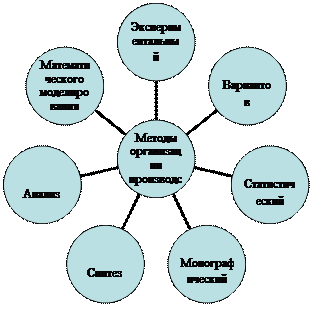 Метод науки – совокупность приемов познания изучаемого предмета. При изучении науки «Организация производства» применяются различные методы: анализ, синтез, монографический и другие (рисунок 1).