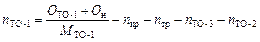 Организация планирования работ по техническому Одним из направлений повышения эффективности ремонта машин является совершенствование планирования, учета и контроля за ходом выполнения всех видов технического обслуживания и ремонтных работ. В связи с этим в хозяйстве, бригаде следует обращать особое внимание на своевременное и правильное составление графиков технического обслуживания тракторов, комбайнов и других сельскохозяйственных машин, учета выполнения ремонтных работ и расхода топлива, на точное и своевременное заполнение учетных и отчетных документов. Для каждого трактора, комбайна и сложных сельскохозяйственных машин разрабатывается индивидуальный график технического обслуживания и ремонта В плане-графике технического обслуживания и ремонта машин указывают: выработку от последнего капитального или текущего ремонта до начала планируемого периода, объем работ на предстоящий период, календарные сроки проведения технического обслуживания и ремонта машин, установленные с учетом периодичности их выполнения. План-график позволяет определить число разных видов технического обслуживания и ремонтов, которые следует провести в планируемый период, потребность в запасных частях, отдельных узлах и деталях по рабочим периодам; порядок контроля за сроками и качеством технического обслуживания и ремонта со стороны специалистов; объем ремонтных работ; затраты материально-денежных средств на техническое обслуживание и ремонт. Количество ремонтов и технического обслуживания по каждой марке трактора и его хозяйственному номеру определяется по следующей нижеприведенной методике. Количество капитальных ремонтов определяется по следующей формуле: