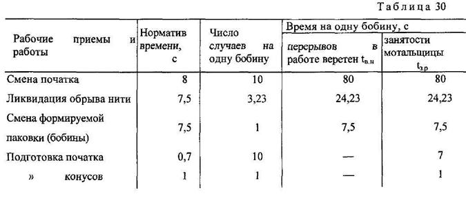 Коэффициент загруженности мотальщицы фотохронометражных наблюдений установлен равным 0,94. Коэффициент занятости мотальщицы