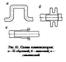 Газоходы для пропуска больших объемов газов при невысоком избыточном давлении изготовляют из железобетонных блоков или кирпича, они имеют, как правило, прямоугольное сечение. Для длинных газоходов, по которым подается газ с температурой более 70°С, следует предусматривать устройства для компенсации температурных удлинений. В некоторых случаях перемещение газопроводов под действием температуры обеспечивается гибкостью имеющихся на трассе колен. Если этого недостаточно, устанавливают специальные компенсаторы (рис.61). П-образные компенсаторы используют при газоходах небольших диаметров. При диаметре газоходов более 0,5 м применяют обычно линзовые или сальниковые компенсаторы. Линзовые компенсаторы используют для давлений до 0,6 МПа, сальниковые компенсаторы — при давлениях в газопроводе не более 0,04 МПа и транспортировании неагрессивных газов. Компенсаторы обычно устанавливают вблизи дымососов, задвижек и другого неподвижного оборудования с тем, чтобы исключить передачу на них недопустимых нагрузок, вызываемых термическими напряжениями. Газоходы с элементами оборудования соединяют на болтах при помощи фланцев. В качестве прокладочного материала используют асбестовый картон толщиной 4 мм или асбестовый шнур диаметром 8–10 мм. Важный элемент системы газоходов – запорные устройства. Для кирпичных и бетонных газоходов прямоугольного сечения запорными устройствами служат листовые задвижки, тарельчатые и поворотные клапаны. Недостаток листовых задвижек – возможность коробления и пропуск газа по периметру рамки. При высоких температурах газов более удобны тарельчатые клапаны, обеспечивающие высокую герметичность газоходов. Больше всего применяют поворотные клапаны. Круглые клапаны имеют одну заслонку, а прямоугольные изготовляют с несколькими заслонками. Межведомственные нормы предусматривают изготовление круглых поворотных клапанов из чугуна с условным проходом 300– 1400 мм. Некоторые газоходы, в соответствии с правилами эксплуатации, снабжают предохранительными клапанами, представляющими собой мембрану, зажатую между фланцами. Мембраны диаметром до 400 мм изготовляют из листового асбеста, а большего диаметра – из мягкой жести толщиной не более 0,5 мм со швом посередине либо из алюминиевого листа толщиной 0,5–1 мм с надрезом по средней линии. Предохранительные клапаны должны располагаться в верхней части газоходов. У клапанов, устанавливаемых вблизи мест прохода обслуживающего персонала, ставят вытяжные короба. Устройства для выгрузки пыли. Пыль из разных пылеуловителей удаляют как сухим, так и мокрым способом. Сухой способ предусматривает переток пыли из бункеров через систему пылевыгрузочных устройств и транспортировку пыли действием ее веса либо транспортирующими устройствами в сухом виде. Мокрый способ предполагает выгрузку пыли в потоке жидкости, обычно воды, через систему гидрозатворов, линий гидротранспорта в отстойники. Предпочтительнее использование для этой цели оборотной воды. Мокрый способ удаления, как правило, применяют после пылеуловителей мокрой очистки. Предпочтительнее сухой способ, так как при этом исключена очистка сточных вод. Обычно уловленная в аппарате пыль скапливается в его нижней бункерной части, откуда ее удаляют через пылевыгрузочные устройства, состоящие из пылево