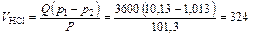2. Принимаем в качестве поглотителя 10%-ный раствор Na2CO3. Так как поглощение HCl сопровождается химической реакцией, а количество карбоната натрия находится в избытке, то концентрация HCl в растворе близка к нулю и равновесная концентрация в газе и равновесное парциальное давление тоже близки к нулю. Движущая сила процесса абсорбции на выходе газа из абсорбера Δ