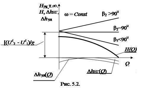 Н РК,т.∞.= [ U 2 – (Q Ctg β2)/ π D 2b2] U 2 /g = U 22 / g – Q U 2 Ctg β2/ g π D 2 b 2. (5.4)