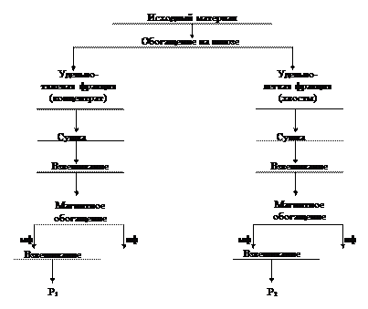 Анализ результатов. Анализ на лабораторном барабанном магнитном сепараторе. 1. Сухие концентрат и промпродукт (раздельно) подвергают разделению на лабораторном магнитном сепараторе на магнитную и немагнитную фракции. 2. Магнитные фракции каждого продукта взвешивают и массу их записывают в табл.9. Массу магнитной фракции в хвостах определяют по разности, так, как количество магнетита в исходной навеске известно. 3. По формулам (1)-(3), приведенным во введении, подсчитывают выходы продуктов, содержание и извлечение магнетита в продукты. Результаты опыта записывают в табл.9. Оформление отчета - см. введение.