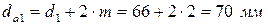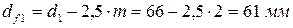 где 4 мм задано превышение ширины шестерни над колесом; - диаметры окружности впадин: