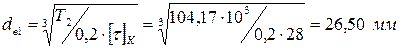 Основной внешней силой, действующей на вал редуктора с прямозубой цилиндрической передачей, является крутящий момент. Прочность вала, имеющего ступенчатую конструкцию в соответствии с заданием (см. рис. 3-5), лимитируется его цилиндрическим концом, где поперечное сечение наименьшее. Диаметр цилиндрического конца вала, обеспечивающий его прочность при кручении, рассчитывают по формуле: