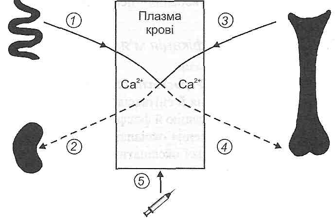 24. Порушений фосфорно-кальцієвого обміну 24.1. Які гормони здійснюють регуляцію фосфорно-кальцієвого обміну в організмі? Паратирин (паратгормон), кальцитонін, гормонально активна форма вітаміну D. 24.2. Як відбувається утворення гормонально активної форми вітаміну D? В організмі існує два джерела вітаміну D: 1) утворення вітаміну D3 (холекальциферолу) у шкірі з 7-дегідрохолестеролу під дією ультрафіолетового випромінювання; 2) надходження в організм вітаміну D2 (ергокальциферолу) у складі харчових продуктів. У печінці під впливом ферменту 25-гідроксилази утворюється транспортна форма вітаміну — 25-оксивітамін D. Ця форма спочатку в складі жовчі виділяється у дванадцятипалу кишку, а потім разом з жовчними кислотами знову всмоктується в кров у тонкій кишці. У нирках під дією ферменту la-гідроксилази утворюється гормонально-активна форма вітаміну D - 1,25-(ОН)2-вітамін D. Крім того, можливе утворення і неактивної форми - 24,25-(ОН)2-вітаміну D. Яка з цих форм утворюється переважно, залежить від концентрації іонів кальцію в плазмі крові. При гіпокальціємії з'являється в основному 1,25-(ОН)2-вітамін D і гальмується утворення 24,25-(ОН)2-вітаміну D; при гіперкальціємії - навпаки. 24.3. Назвіть основні біологічні ефекти гормонально активної форми вітаміну D. Основний біологічний ефект 1,25-(ОН)2-вітаміну D- збільшення всмоктування кальцію її фосфатів у тонкій кишці. Діючи на епітеліальні клітини слизової кишки, 1,25-(ОН)2-вітамін D, як і інші стероїдні гормони, проникає через плазматичну мембрану в цитоплазму ентероцитів, а потім у комплексі з внутрішньоклітинним білком-рецептором у їхнє ядро. У ядрі відбувається активація транскрипції генів, що кодують структуру функціонально важливих білків: кальбідину (білка, що зв'язує Са) і білків кальцієвих насосів, зокрема, Са-АТФ-ази. Кальбідин вмонтовується в плазматичну мембрану апікальної частини ентероцитів і забезпечує полегшену дифузію іонів кальцію із просвіту кишок у цитоплазму клітин кишкового епітелію. Кальцієві насоси здійснюють активний транспорт іонів кальцію із цитоплазми ентероцитів через плазматичну мембрану базальної частини клітин в інтерстицій і кров. Другою "мішенню" для 1,25-(ОН)2-вітаміну D є кісткова тканина, де цей гормон, впливаючи на остеобласти, гальмує синтез колагену, а діючи на остеокласти, стимулює резорбцію кістки. У кінцевому підсумку дія 1,25-(ОН)2-вітаміну D виявляється збільшенням концентрації іонів кальцію в плазмі крові. Неактивна форма вітаміну D - 24,25-(ОН)2-вітамін D гальмує секрецію парати-рину прищитоподібними залозами й посилює інактивацію стероїдів у печінці, у тому числі й вітаміну D. 24.4. Які фактори стимулюють і гальмують секрецію паратирину прищитоподібними залозами? Секрецію napamupuny стимулює зменшення концентрації іонів кальцію в плазмі крові, а гальмує - збільшення вмісту цих іонів у плазмі й 24,25-(ОН)2-вітамін D. 24.5. Назвіть основні біологічні ефекти паратирину. 1. Дія на кісткову тканину - активація функції остеокластів. Під впливом паратирину відбувається вивільнення остеокластами лізосомних ферментів, які розщеплюють органічну матрицю кісткової тканини. Крім того, остеокласти починають продукувати великі кількості цитрату, що сприяє вимиванню кальцію з кристалів оксіапатиту. Результатом зазначених ефектів є збільшення концентрації іонів кальцію в крові, з одного боку, і демінер