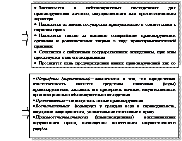 Виды юридической ответственности. Понятие, признаки и функции юридической ответственности