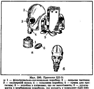 Засоби захисту органів дихання призначені для захисту співробітників та населення від потрапляння в середину організму людини радіоактивних, сильнодіючих отруйних речовин (СДОР) і бактеріальних засобів. ЗІЗ класифікується за принципом захисту і способу виготовлення. За принципом захисту ЗІЗ діляться на фільтруючі і ізолюючі. Фільтруючі очищують повітря від шкідливих домішок при проходженні повітря через фільтри. Ізолюючі – повністю ізолюють органи дихання людини від навколишнього середовища з допомогою матеріалів, які не пропускають повітря та шкідливі домішки. Фільтруючий протигаз ЦП-5 (ЦП-7) призначений для захисту людини від попадання в органи дихання, на очі і обличчя СДОР, радіоактивних речовин і бактеріальних засобів.