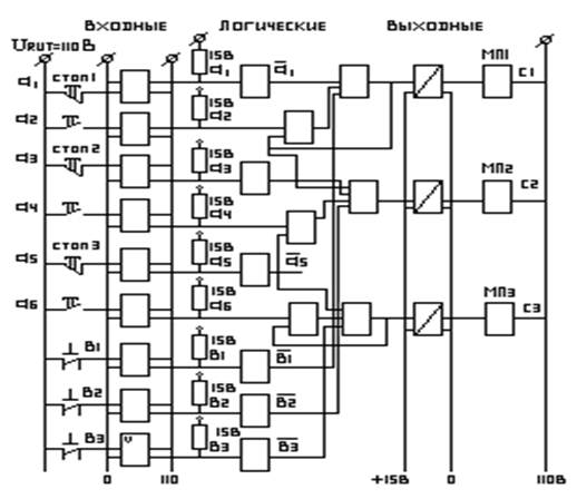 Недостатком данной схемы является большое количество элементов, ненадёжность, высокая стоимость. Альтернативой жёсткой (монтажной логики) является применение программируемых контроллёров(ПК).