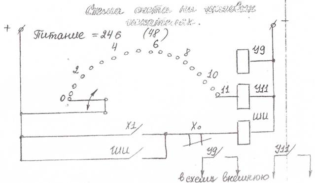 Работа схемы: При замыкании схемы Х1 включается катушка ШИ и встает на самопотпитку. При нажатии Х0, катушка обесточивается. При каждом нажатии Х1. Бегунок переходит на 1 шаг. С контактов берется выходной сигнал счета.