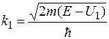зависит от разности полной энергии и потенциальной функции, которая различна по разные стороны барьера. Поэтому и волновые числа по разные стороны барьера будут разными; обозначим их