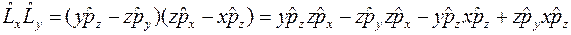 и соблюдая порядок расположения операторов и координат и проекций импульса, с помощью записи векторного произведения в форме определителя