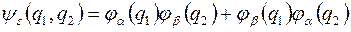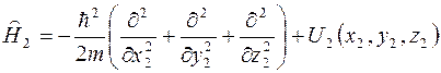 - гамильтонианы первой и второй частицы (они действуют на координаты только своей частицы). Гамильтониан системы невзаимодействующих частиц равен только сумме гамильтонианов отдельных частиц, поскольку нет оператора энергии взаимодействия частиц