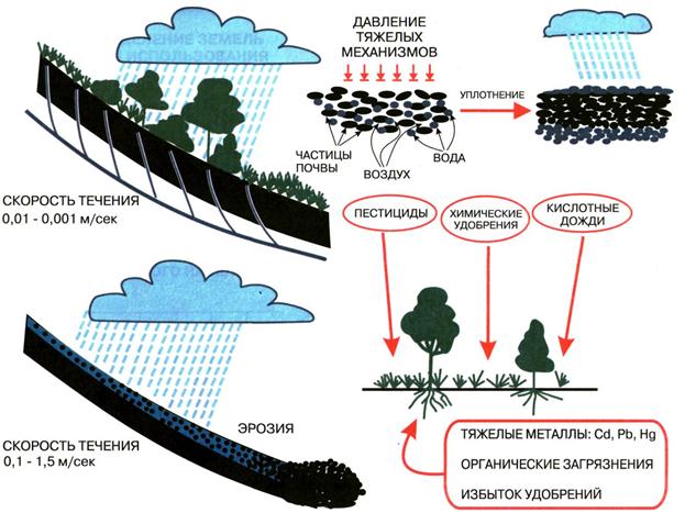 Приложение 2. Схема 3 – Влияние скорости течения воды на деградационные изменения почвы (Квасничкова с соав., 2000 г.)