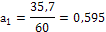 Табылған а1=0,595 шаманы жүйенің бірінші теңдігіне қойып, а0 – дің шамасын анықтаймыз.