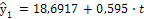 Демек, құрылған теңдеменің у және х ортасындағы сызықты байланыс, яғни тренд моделі төмендегі көріністе болады.