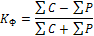 мұнда d2- х пен У мэндерінің рангілері арасындағы айырмашылық (d=Nx-Ny) п - қатардың саны. Бұл көрсеткішті есептеу үшін факторлық (х) және нәтижелі (у) белгі мәндері өсу немесе кему дәрежесі бойынша рангіленеді, яғни жиынтықтың әрбір бірліктері өздеріне тән белгілеріне қарай ретке келтіріледі және жеке нөмірленеді. Егер х пен у -тің өзгермелі мәндері бірдей шамалармен берілген болса, онда олардың рет нөмірінің қосындысын екіге бөлу арқылы орташа шамасы табылады да, әркайсысы ретіне қарай жеке нөмірленеді. Жалпы алғанда, рангілі корреляция коэффициенті әрқашанда нөлден (0) плюс-минус бірге дейін (±1) өзгереді және оны кез келген сандар қатары бойынша есептеуге мүмкіндік туады. Натижелі және факторлық белгілер арасыңдағы байланыс тығыздығын шашыранды мен корреляциялық талдау әдісін қолдану арқылы зерттеу жүргізу белгілі бір киындықка алып келеді және есептеу жұмыстарының көлемін көбейтеді. Соңдықтан бұлардың арасындағы байланыс тығыздығын жуық шамамен сипаттайтын есептеу жұмыстары аздау және ең қарапайым түрі болған таңбалы корреляция коэффициенті есептеледі, оны Фехнер коэффициенті деп те атайды. Егер ауытқу белгілеріне сәйкес келуін С - әріпмен, ал сәйкес келмеуін Р - әрпімен белгілейтін болсақ. онда Фехнер коэффициентін төмендегі формула арқылы есептеуге болады:[51]