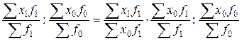 Пример. Если по определенной группе товаров цена единицы товара в отчетном периоде по сравнению с базисным возросла на 20%, а физический объем товарооборота снизился на 5%, то можно определить изменение объема товарооборота в фактических ценах: