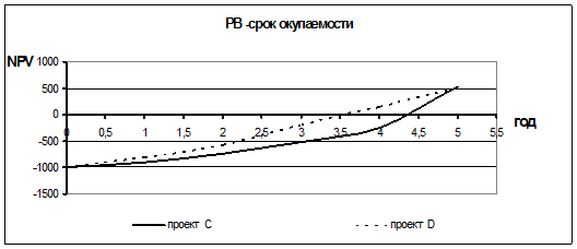 Рис. 2.6. График зависимости срока окупаемости проектов PB от времени.