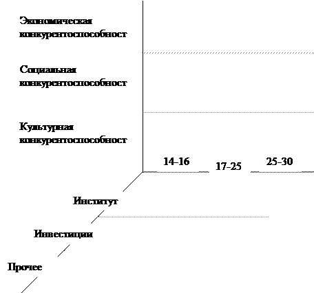 Главные задачи в повестке дня молодежной политики: 1) формирование мировоззрения; 2) развитие компетенций молодого поколения. В сознании должны быть закреплены следующие базовые установки: «успешный человек в успешной стране»; патриотизм и гражданственность; здоровый образ жизни, бережное отношение к природе. Ориентиром деятельности является увеличение числа молодых людей, обладающих следующим набором востребованных компетенций: - креативное мышление, способность генерировать инновации; - коммерциализация идей, наличие предпринимательских навыков; - гражданское участие, осознанное и ответственное социальное поведение; - жизненная навигация, выстраивание карьерных траекторий; - проектное мышление, умение управлять проектами. Для достижения заявленной цели, решения поставленных задач и создания обозначенных социальных эффектов деятельности необходим системный поход к государственной молодежной политике и инвестиции в человеческий капитал (бюджетные ассигнования, фонды). Для обеспечения развития инновационной экономики молодежь должна стать основным объектов для инвестиций в человеческий капитал. Молодым людям необходимо создать условия и возможности для позитивного развития, предоставив дополнительные возможности для профессиональной и творческой самореализации, обеспечив территориальную, включая образовательную, мобильность, настроив работу «социальных лифтов».
