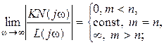 Пусть звено имеет передаточную функцию Если нули передаточной функции (корни уравнения N (s) = 0)и полюса передаточной функции (корни уравнения L (s) = 0) имеют действительные части, отрицательные или равные нулю, то такое звено будем называть звеном минимально-фазового типа. При наличии хотя бы одного нуля или полюса с положительной вещественной частью звено будет относиться к нeминимально-фазовому типу. Рассмотрим эти звенья на простейшем примере. Для звена с передаточной функцией Таким образом, при одинаковых АЧХ неминимально-фазовое звено имеет больший по модулю фазовый сдвиг. Указанное свойство справедливо и в общем случае. Рассмотрим еще одно важное свойство звеньев – свойство физической реализуемости. Для любого реального устройства АЧХ с увеличением частоты должна уменьшаться и стремиться к нулю, а фазовые сдвиги на высоких частотах должны быть отрицательными. Пусть полином числителя КN (s) передаточной функции W (s) имеет порядок m, а полином знаменателя