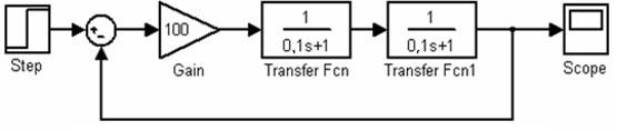 С помощью известной системы математических расчетов Matlab, в которую встроен специальный пакет для исследования систем автоматического управления – Control System Toolbox, можно по передаточной функции системы построить необходимые графики временных характеристик. В Matlab также можно представить эквивалентную модель системы в среде Simulink и исследовать ее характеристики в этом приложении. Рассмотрим применение описанных возможностей работы в Matlab на примере системы, структурная схема которой задана в виде последовательного соединения двух апериодических звеньев с параметрами: K 1 = 2; K 2 = 50;
