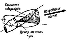 пули описывает окружность, а ее ось – конус с вершиной в цен- тре тяжести, т. е., ось пули как бы постоянно “следит” за направ-лением полета пули (Рис. 75).