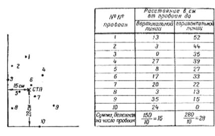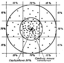 Следует иметь в виду, что если последняя пробо-ина будет удалена от СТП предыдущих пробоин более чем на диаметр окружности, проведенной через центры предыдущих пробоин, то эту пробоину следует считать Рис. 83. Определение оторвавшейся оторвавшейся и не учитывать пробоины при определении СТП.